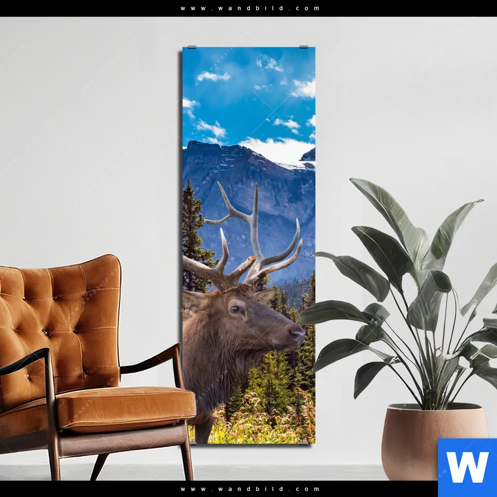 Alu-Dibond Bild | Hirsch vor Bergkulisse | Schmal