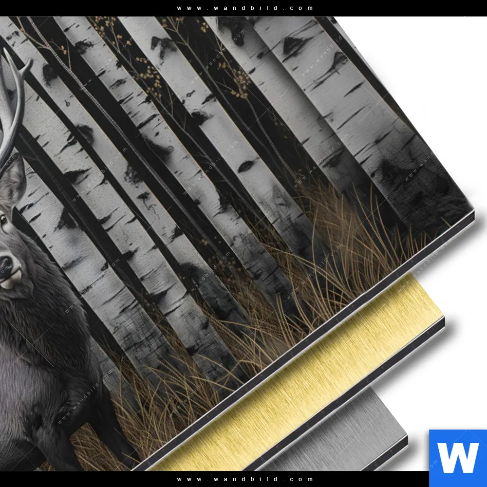 Alu-Dibond Bild | Hirschporträt vor Birken | Querformat