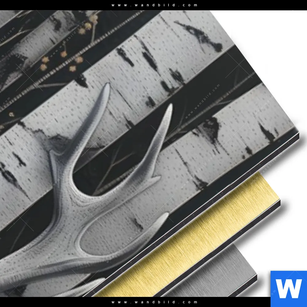 Alu-Dibond Bild | Hirschporträt vor Birken | Schmal