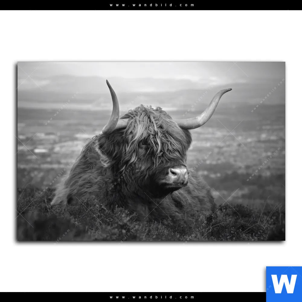 Alu-Dibond Bild | Hochland-Rind Schwarz-Weiß No. 2 | Querformat