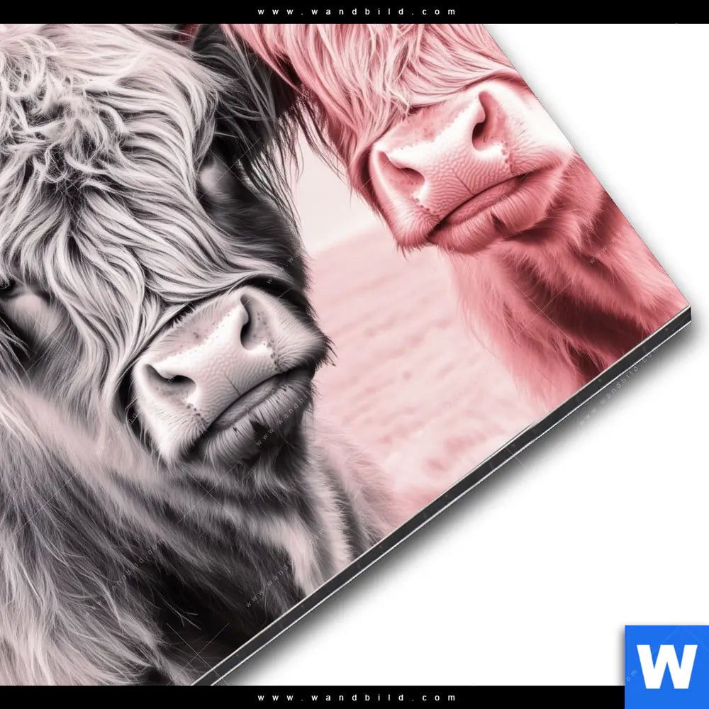 Alu-Dibond Bild | Hochlandrinder - Harmonie in Pastell | Quadrat