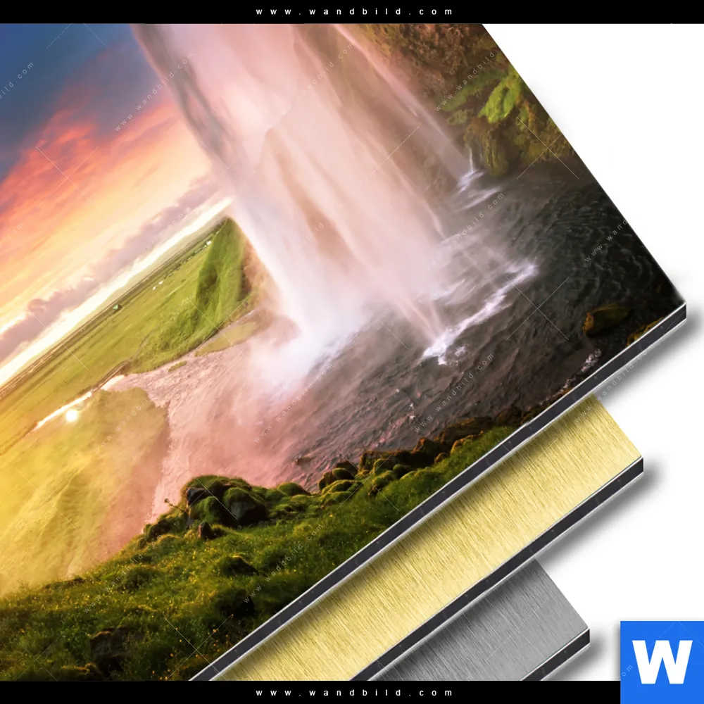 Alu-Dibond Bild | Isländischer Wasserfall | Quadrat
