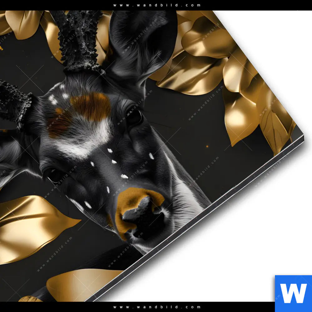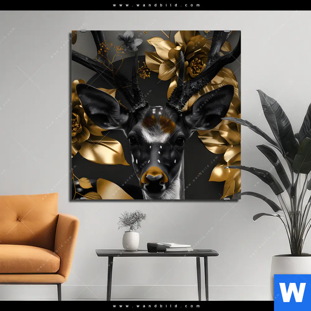Alu-Dibond Bild | Junger Hirsch und Goldblumen | Quadrat