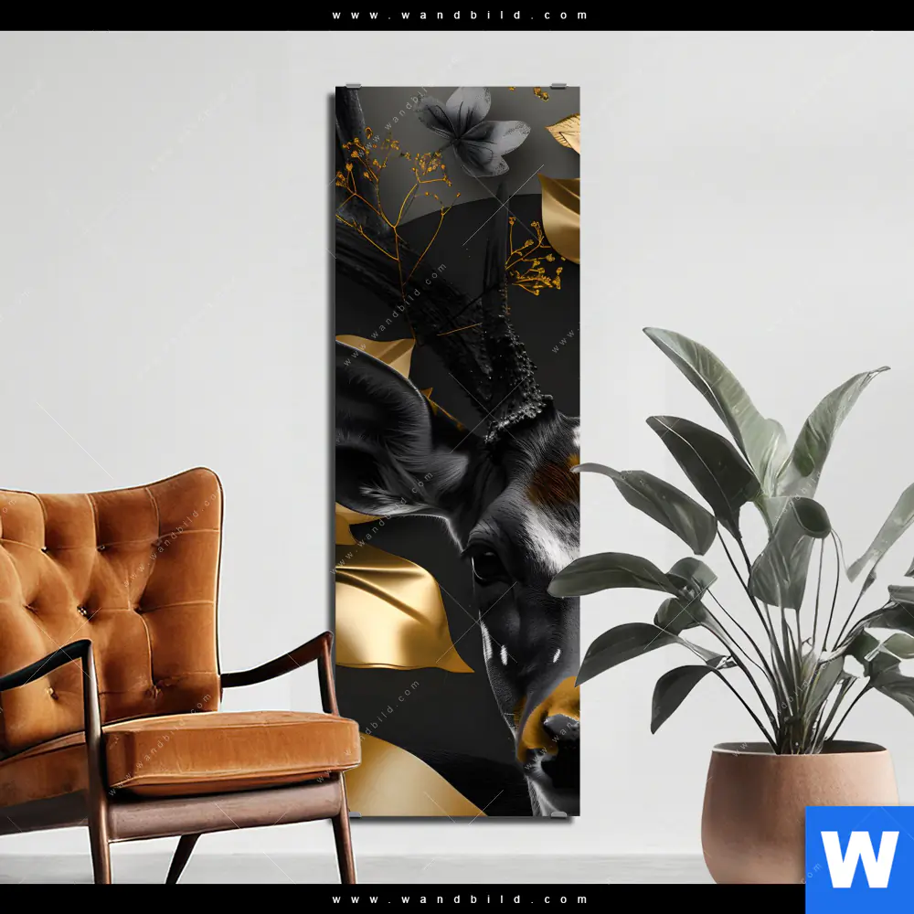 Alu-Dibond Bild | Junger Hirsch und Goldblumen | Schmal