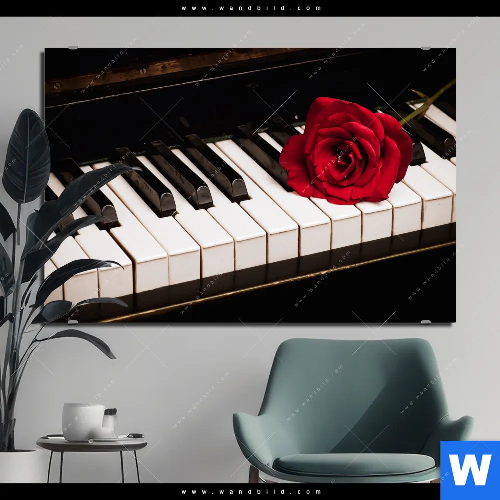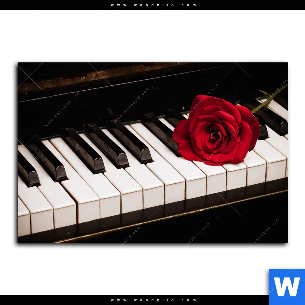 Alu-Dibond Bild | Klavier & Rose | Querformat