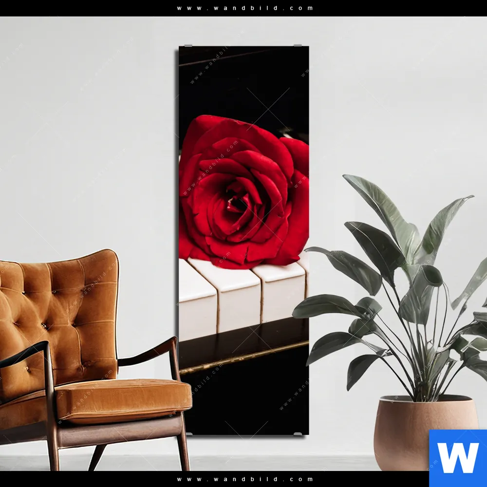 Alu-Dibond Bild | Klavier & Rose | Schmal