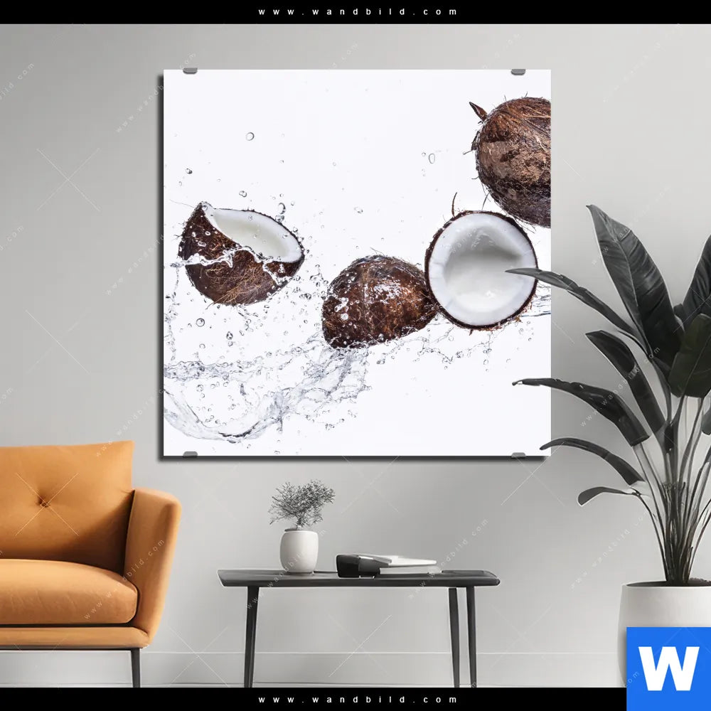 Alu-Dibond Bild | Kokosnüsse mit Wasserspritzer | Quadrat