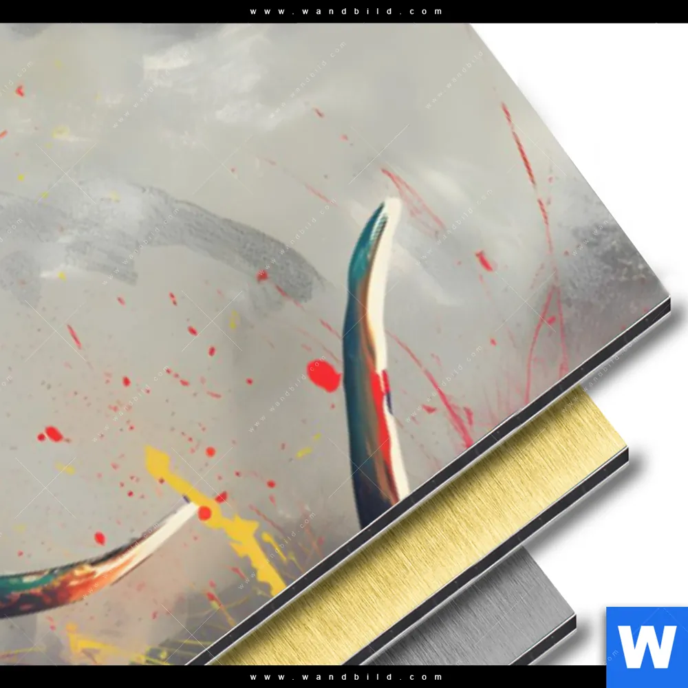 Alu-Dibond Bild | Kreativer Hirsch mit Farbspritzern | Schmal
