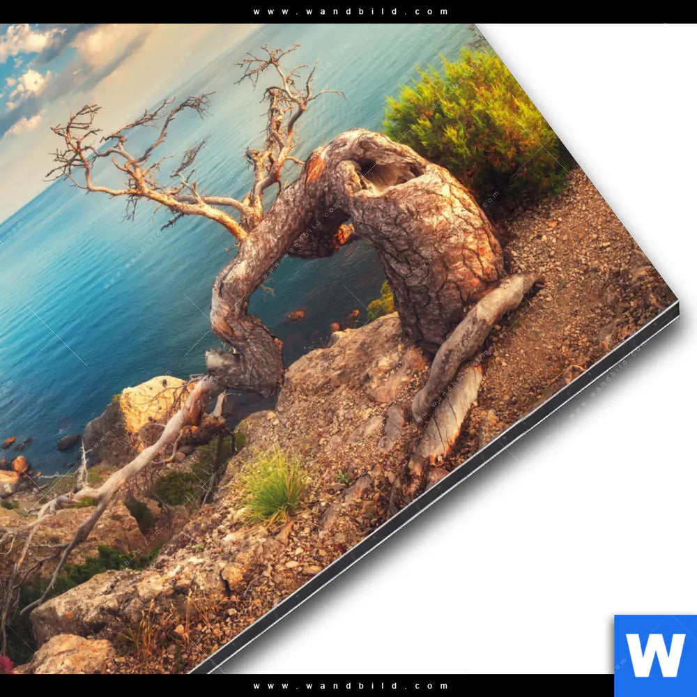 Alu-Dibond Bild | Küstenlandschaft mit altem Baum | Quadrat