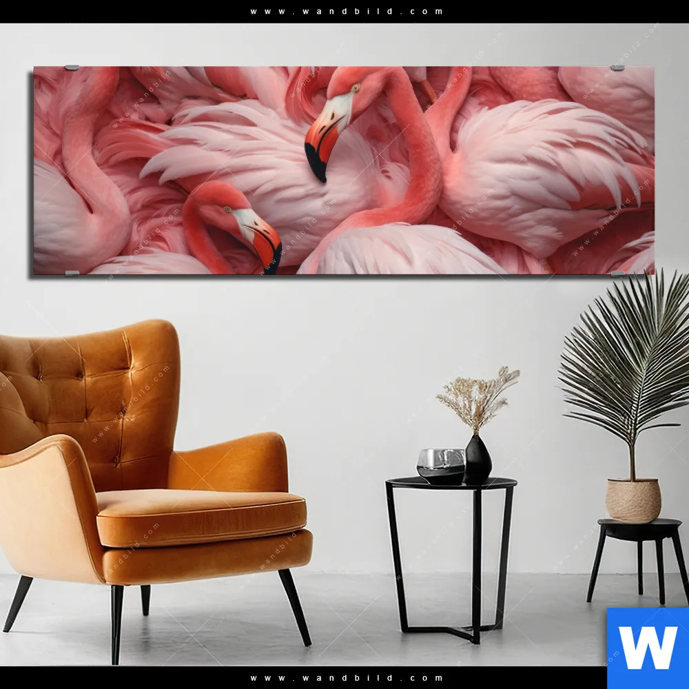 Alu-Dibond Bild | Kuschelnde Flamingos | Panorama