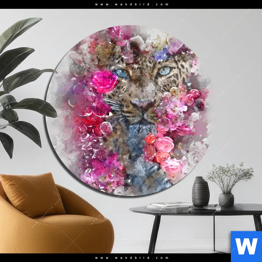 Alu-Dibond Bild | Leopard & Blumen | Rund