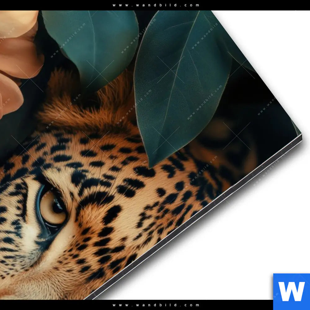 Alu-Dibond Bild | Leopard im Blütenmeer | Hochformat