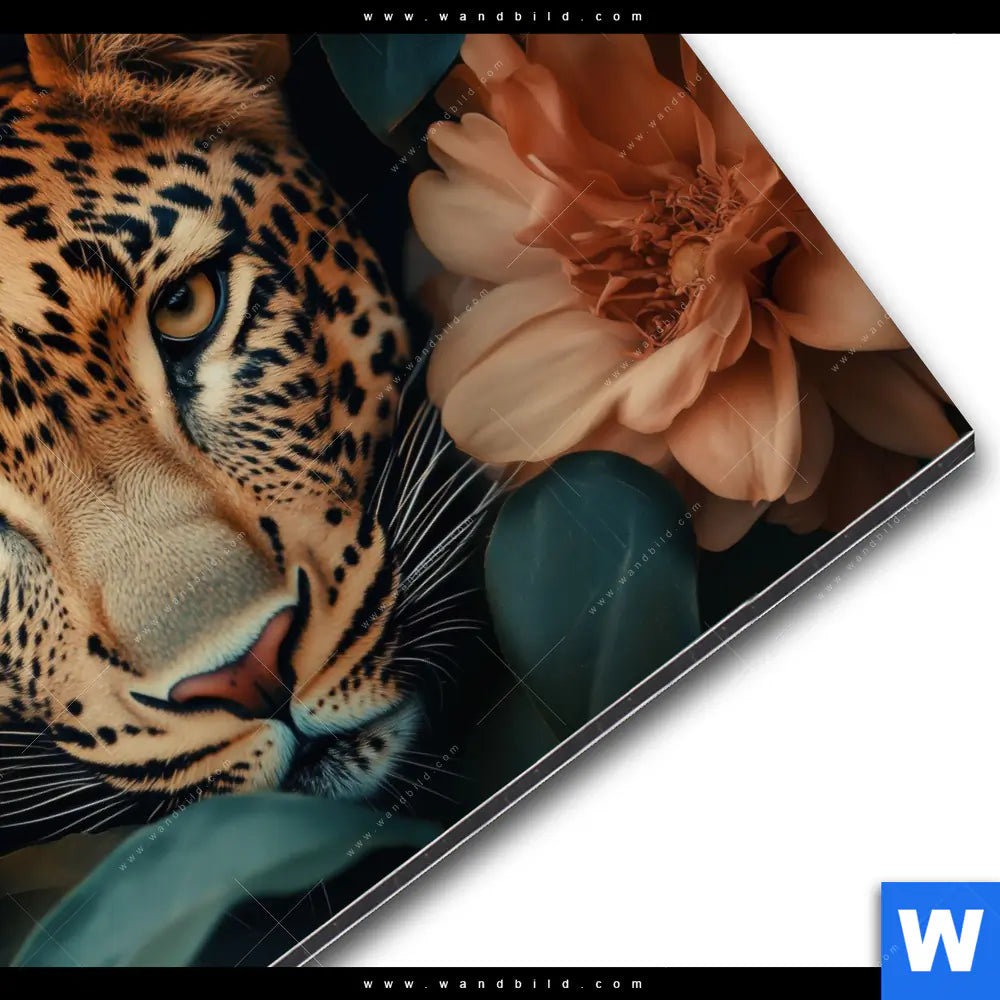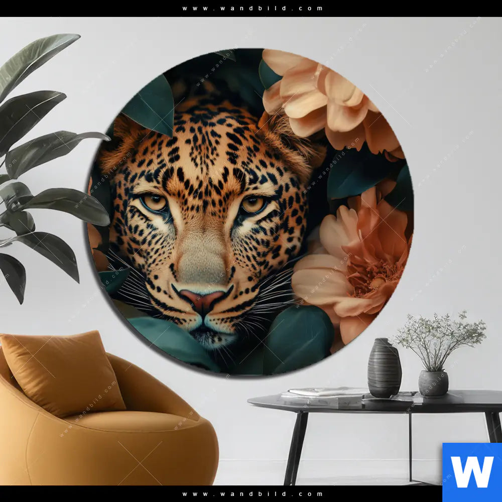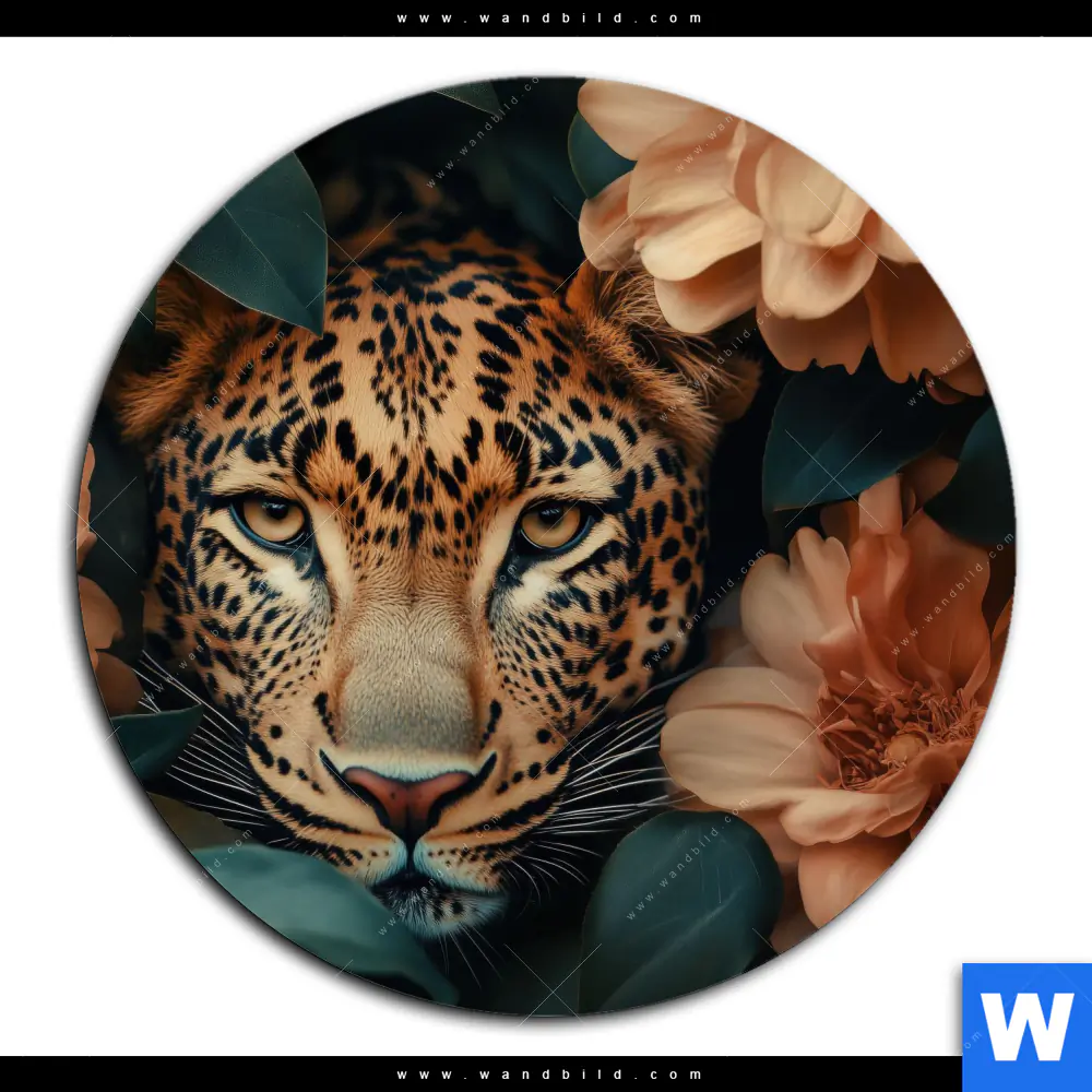 Alu-Dibond Bild | Leopard im Blütenmeer | Rund
