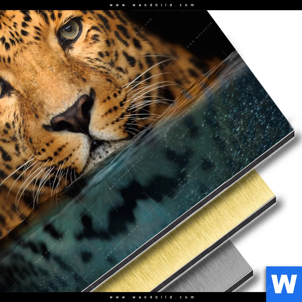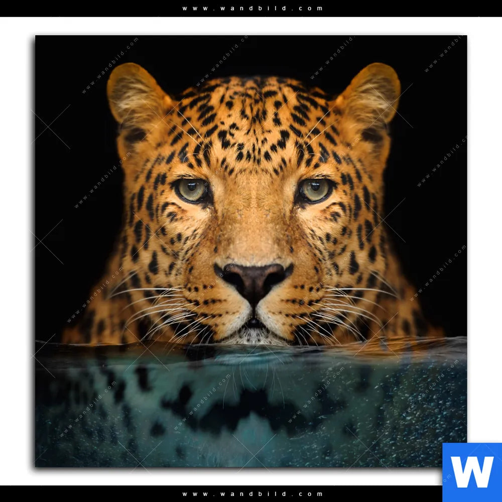 Alu-Dibond Bild | Leopard im Wasser | Quadrat