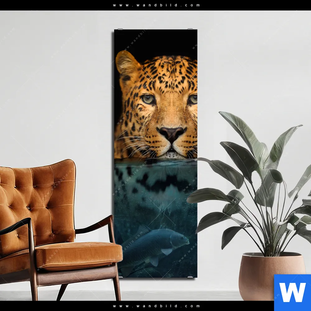 Alu-Dibond Bild | Leopard im Wasser | Schmal