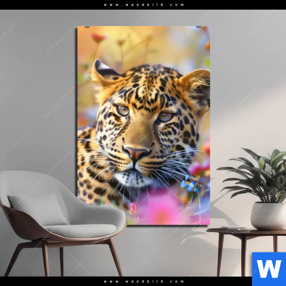 Alu-Dibond Bild | Leopard in blühender Wildnis | Hochformat