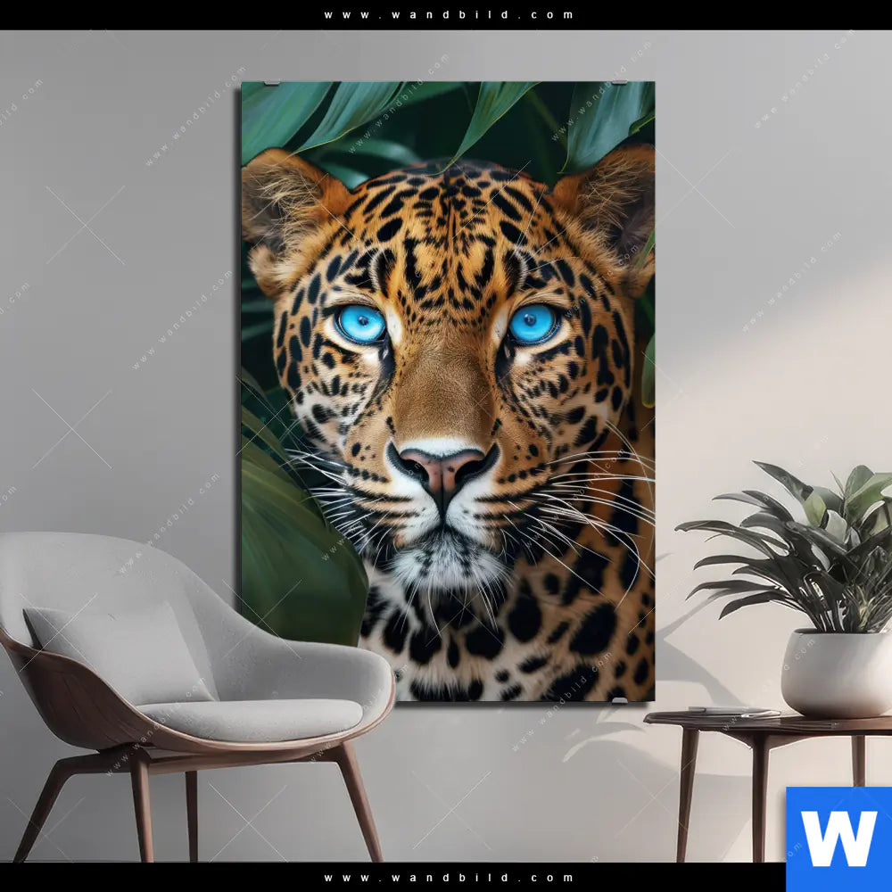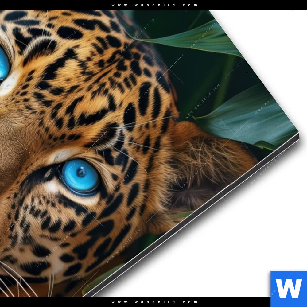 Alu-Dibond Bild | Leopard mit blauen Augen | Hochformat