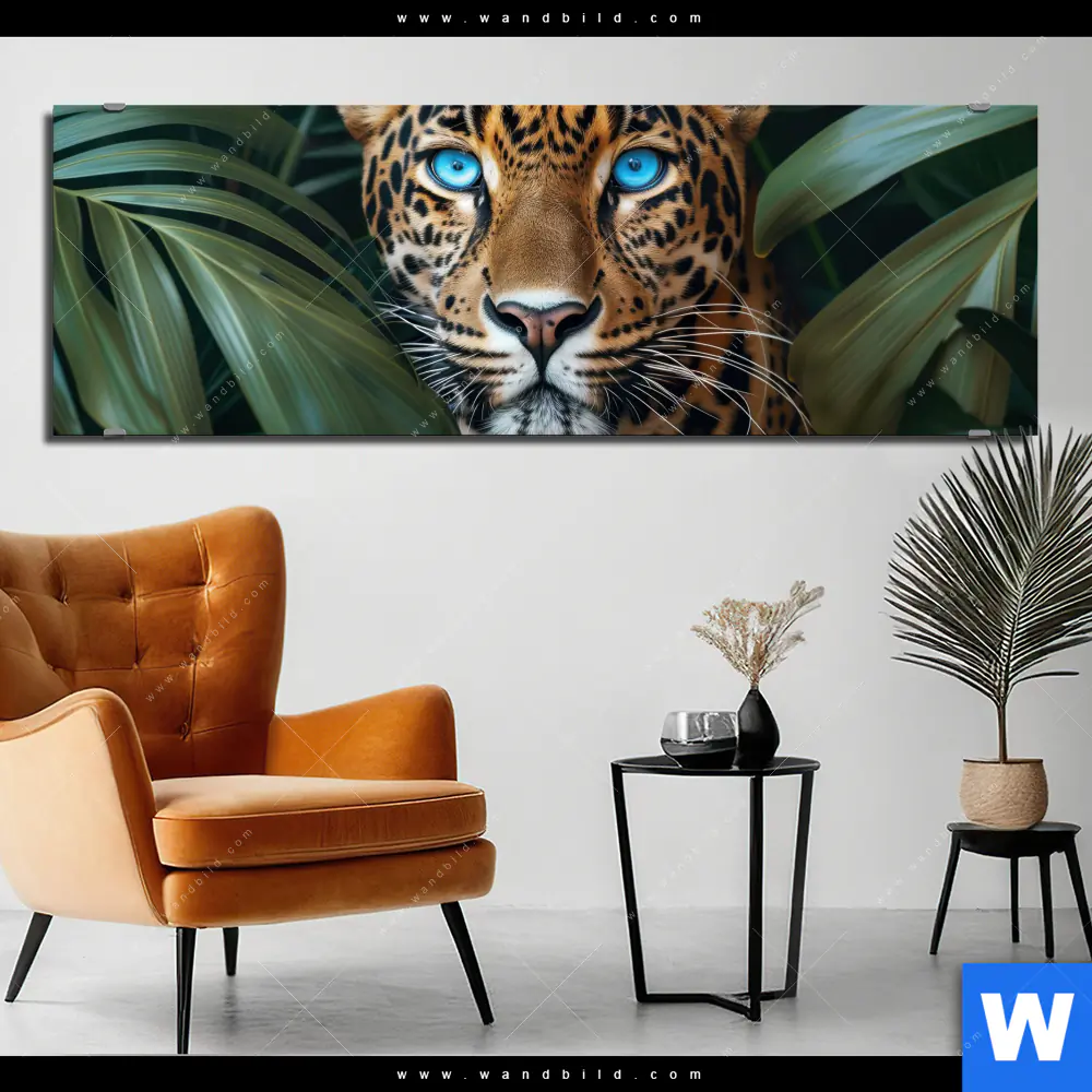 Alu-Dibond Bild | Leopard mit blauen Augen | Panorama