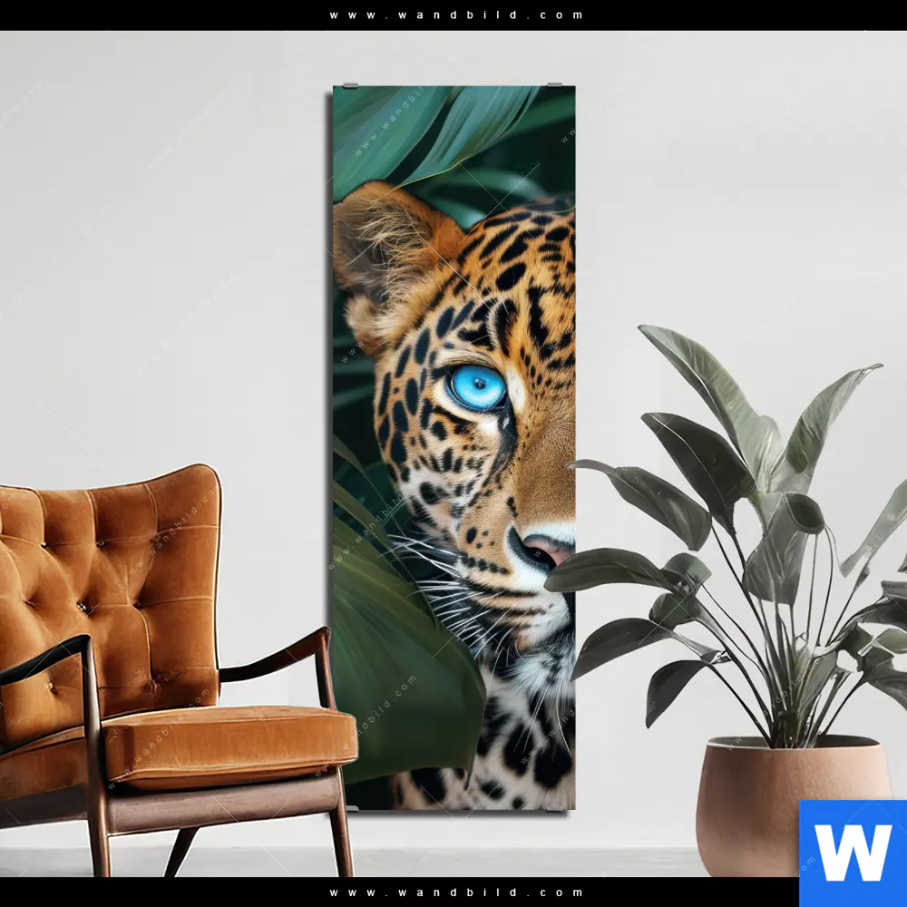 Alu-Dibond Bild | Leopard mit blauen Augen | Schmal