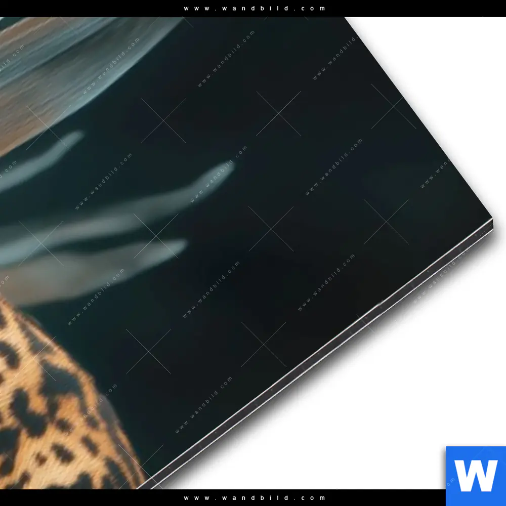 Alu-Dibond Bild | Leopard zwischen Blättern | Schmal