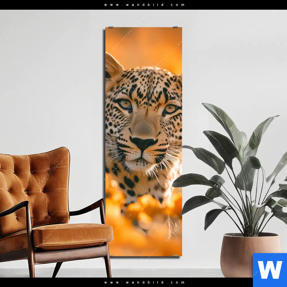 Alu-Dibond Bild | Leopardentraum in Orange | Schmal