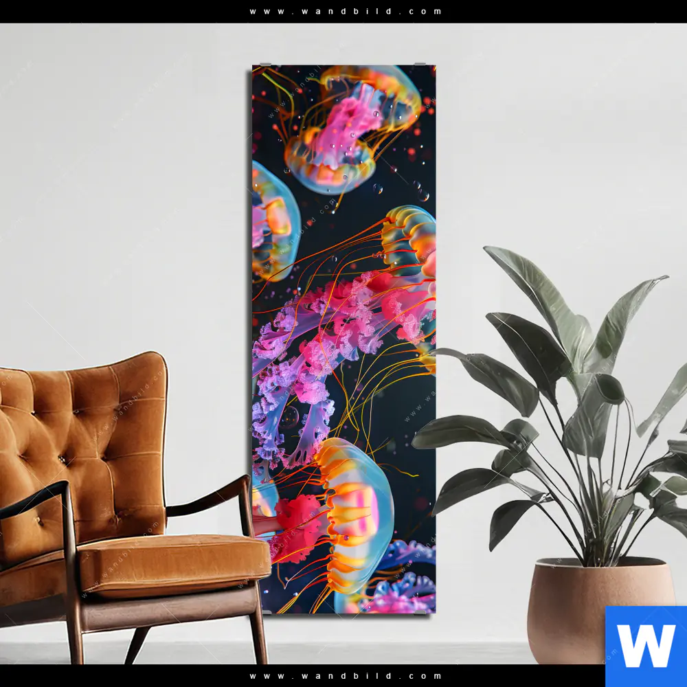 Alu-Dibond Bild | Leuchtende Quallen unter Wasser | Schmal
