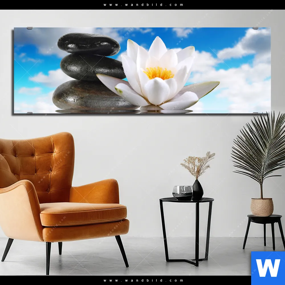 Alu-Dibond Bild | Lilie & Zensteine | Panorama