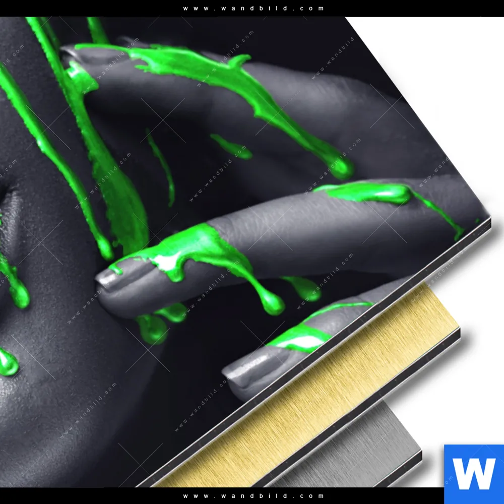 Alu-Dibond Bild | Lippen Silber & Grün | Querformat