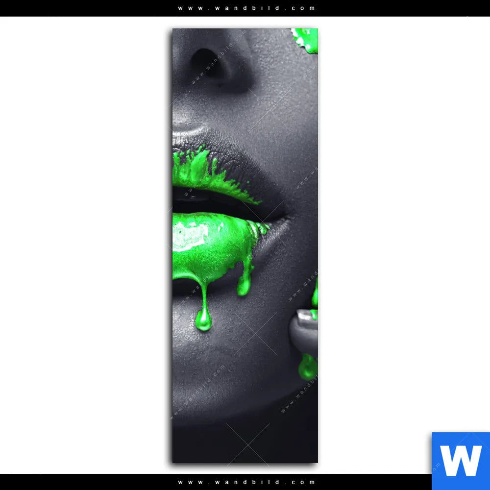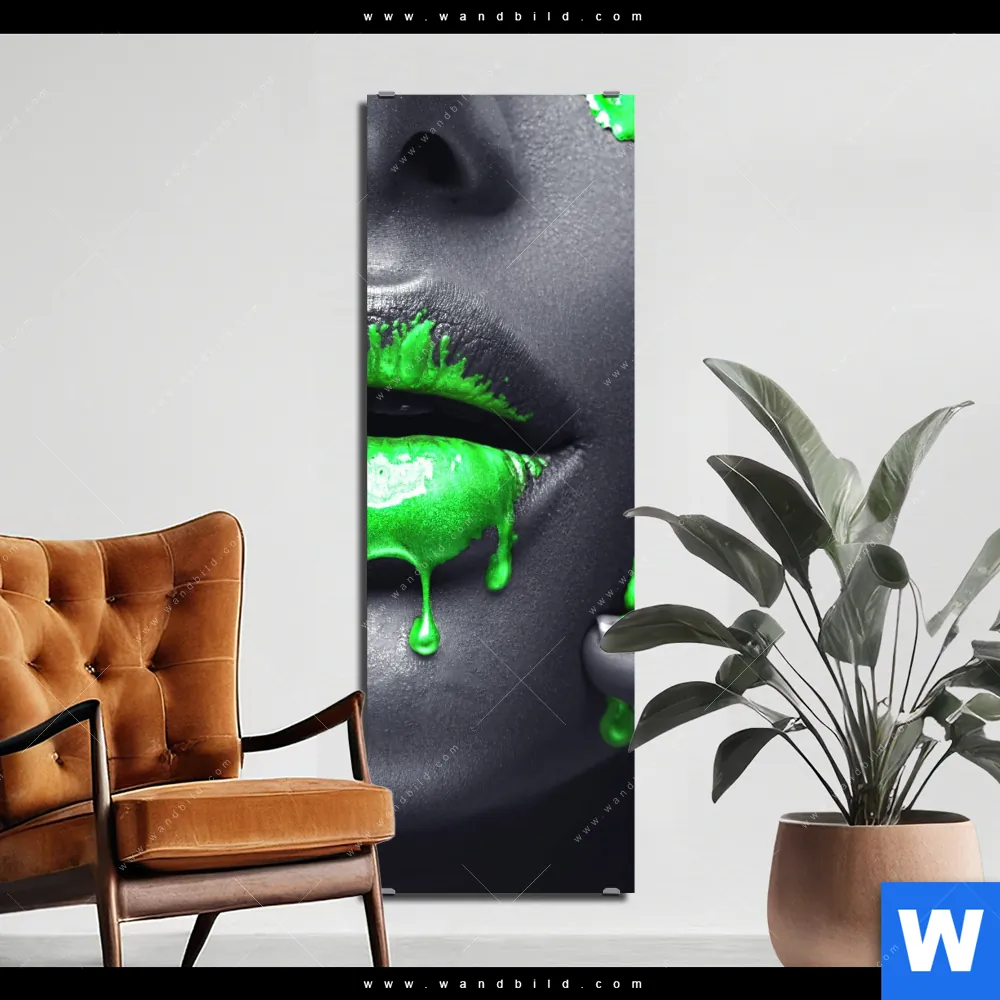 Alu-Dibond Bild | Lippen Silber & Grün | Schmal