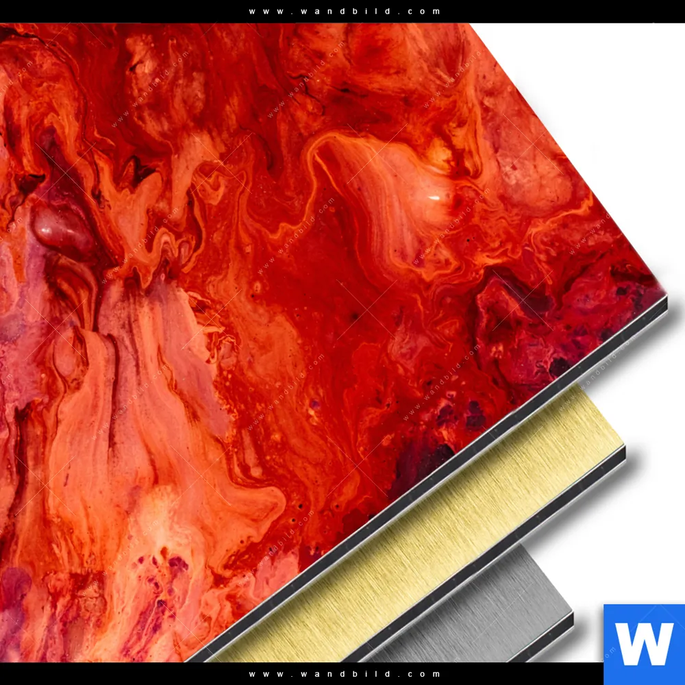 Alu-Dibond Bild | Liquid Marmor rot | Quadrat