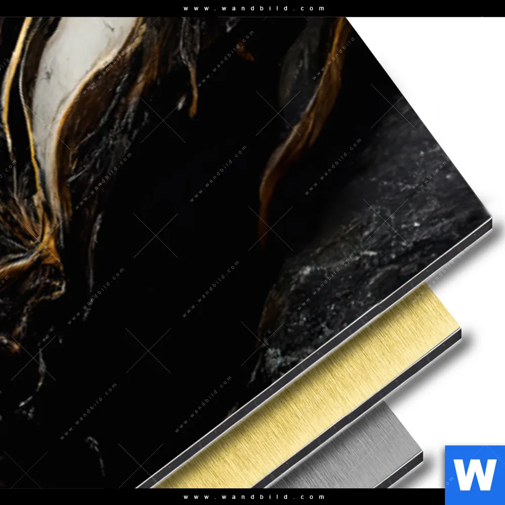 Alu-Dibond Bild | Liquid Marmor Schwarz Gold | Panorama
