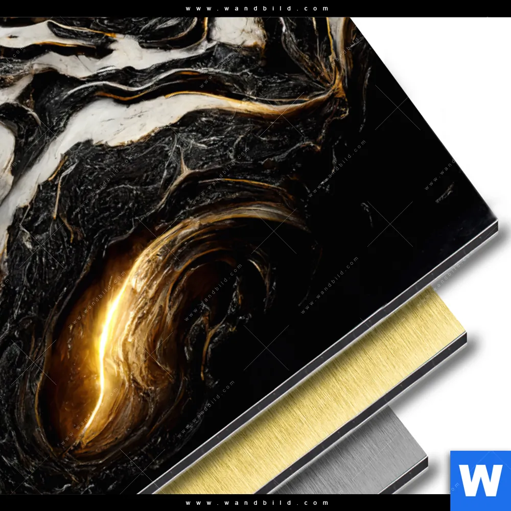 Alu-Dibond Bild | Liquid Marmor Schwarz Gold | Querformat