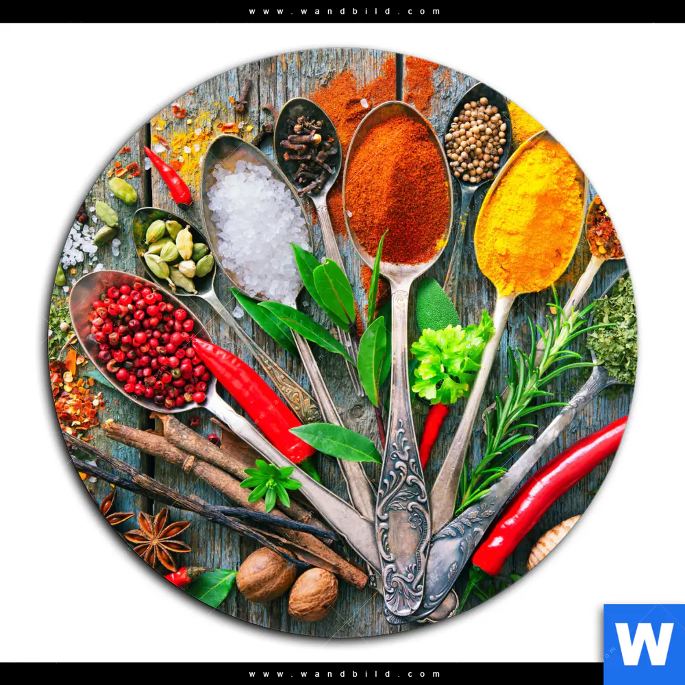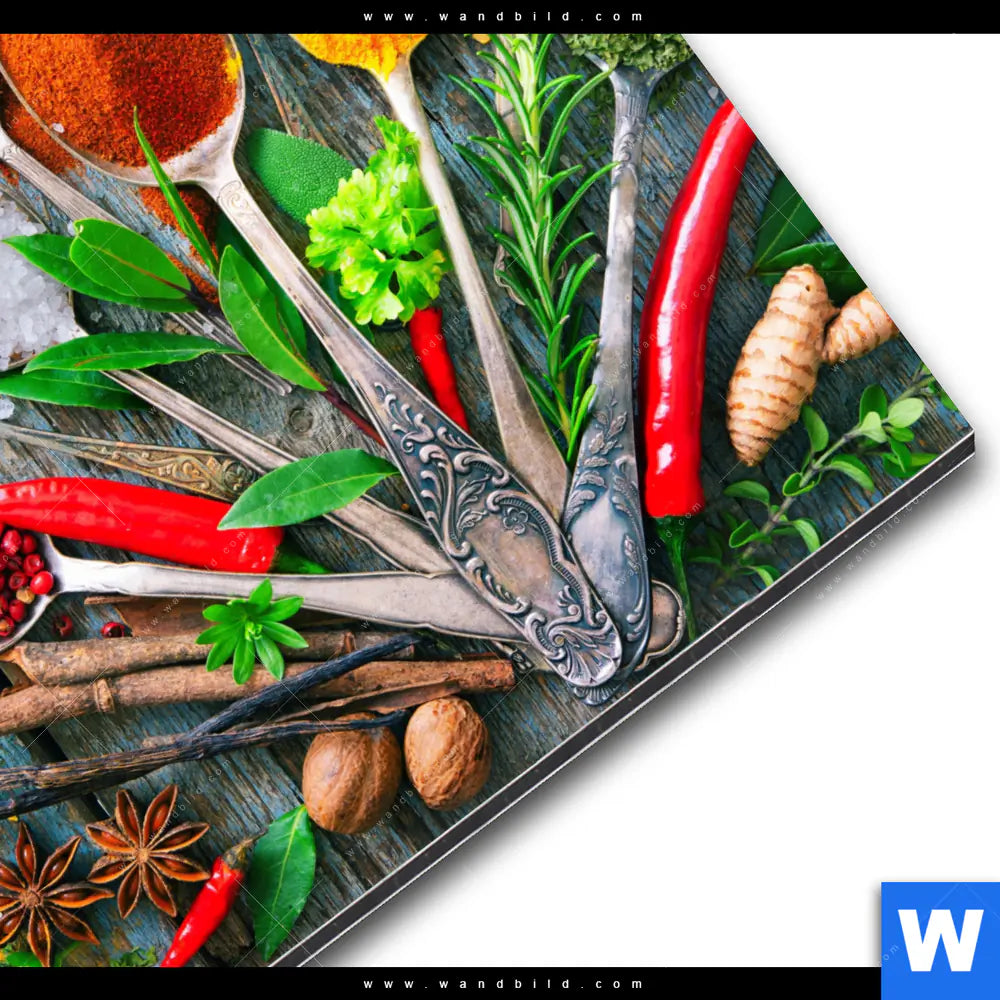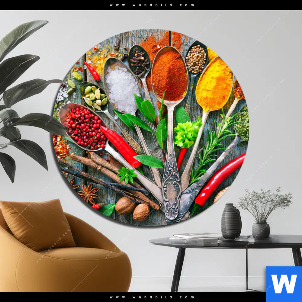 Alu-Dibond Bild | Löffel mit Kräutern und Gewürzen | Rund