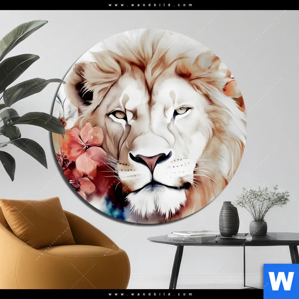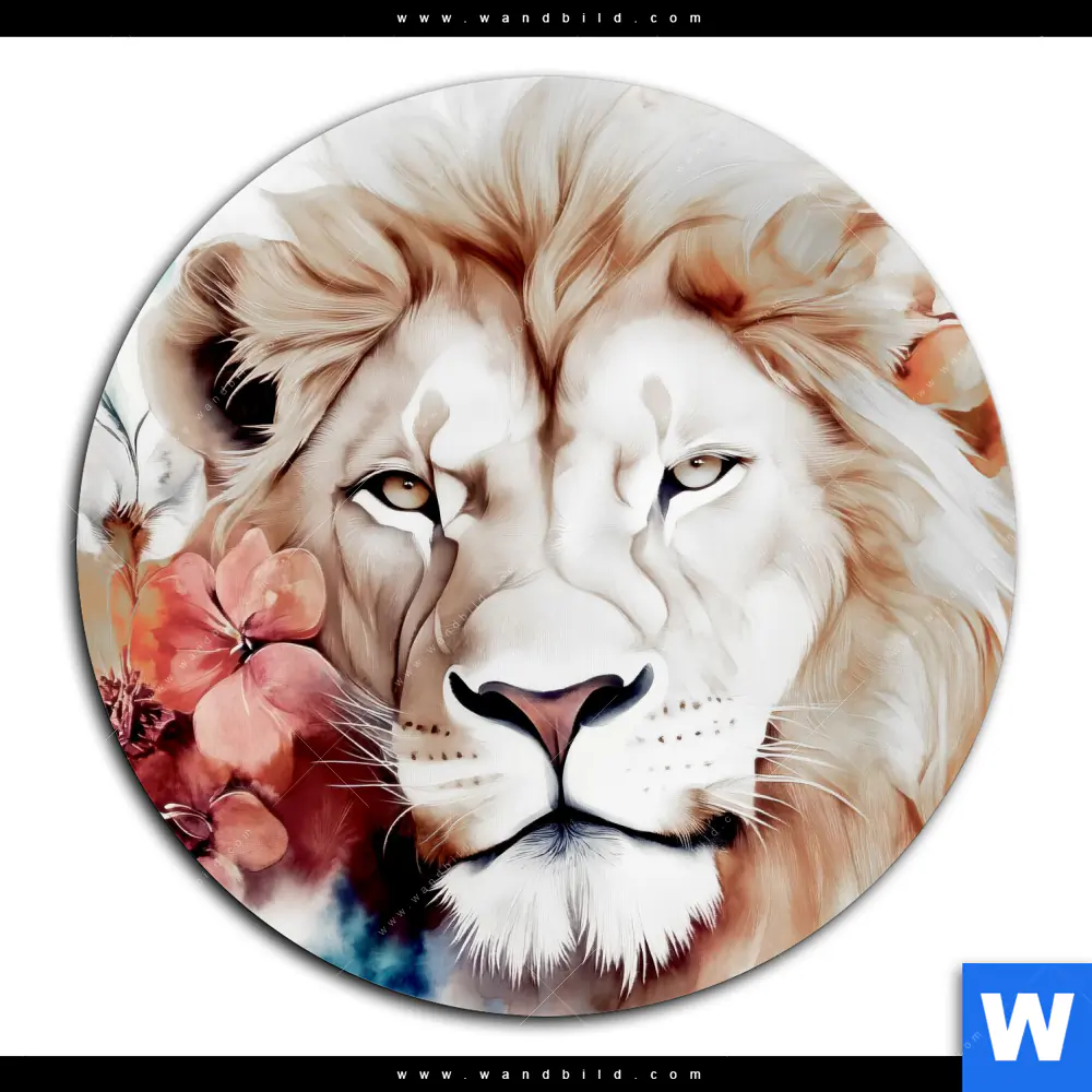 Alu-Dibond Bild | Löwe mit Blumen | Rund