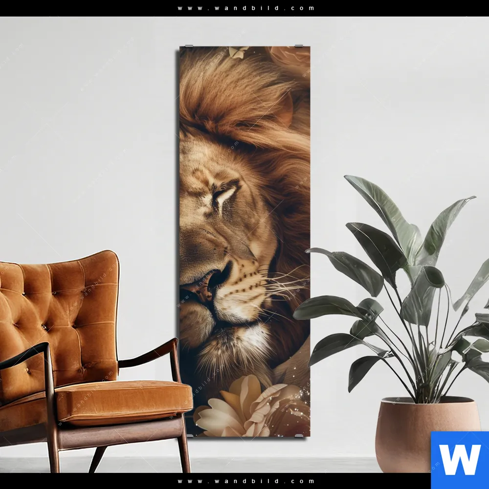 Alu-Dibond Bild | Löwe schläft in Blüten | Schmal