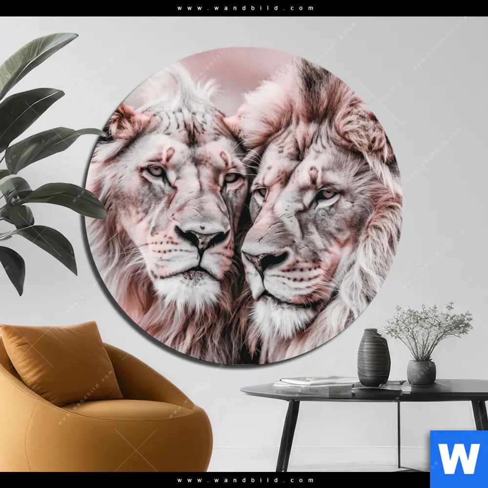 Alu-Dibond Bild | Löwen - Harmonie in Pastell | Rund