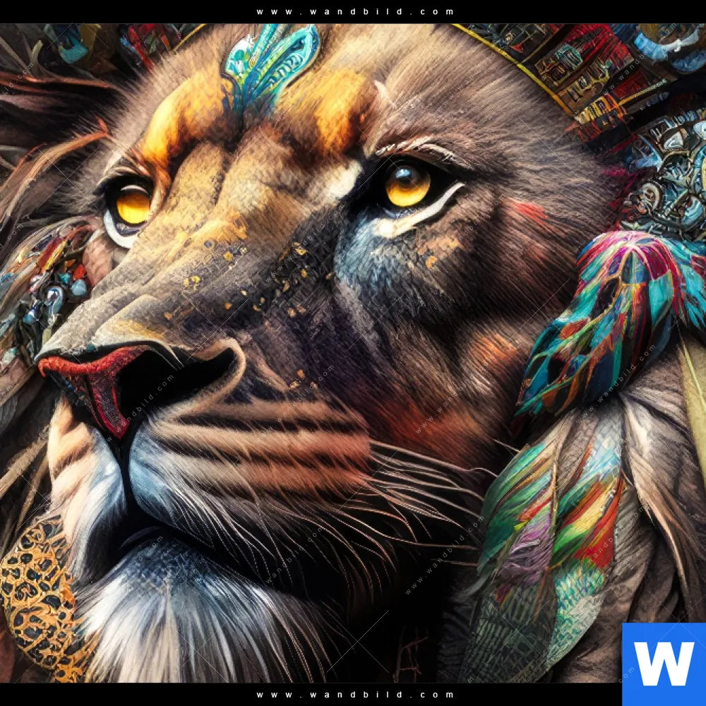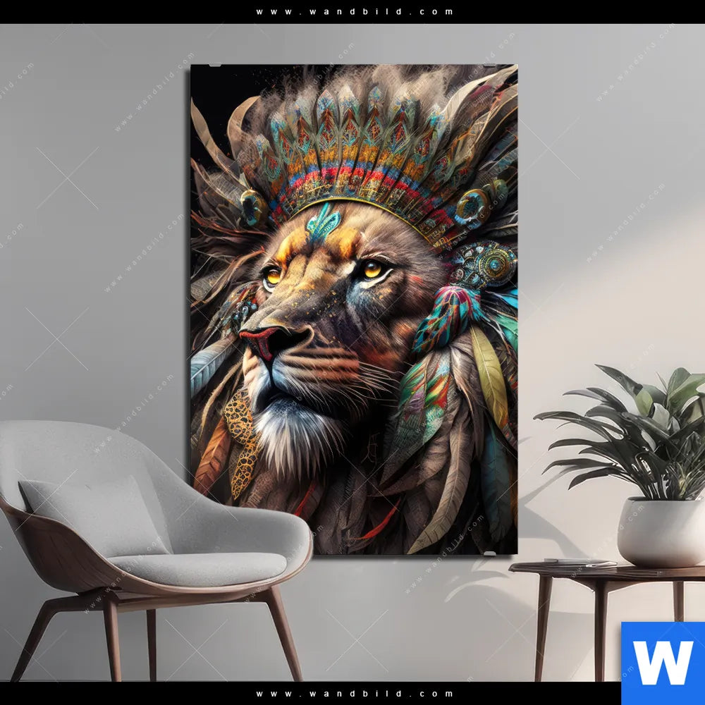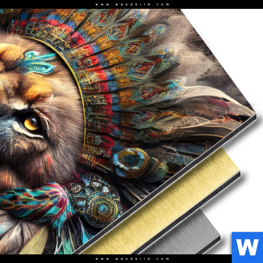 Alu-Dibond Bild | Löwenkopf mit bunten Federn | Hochformat