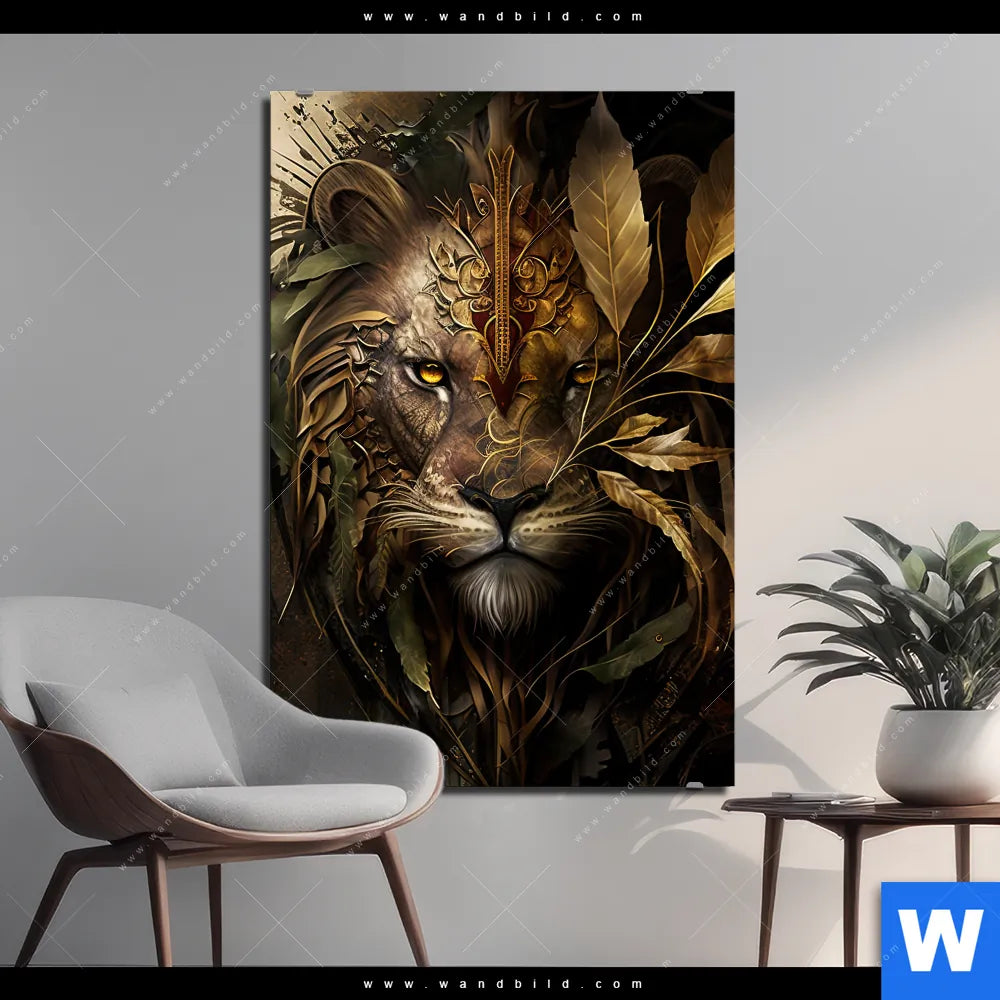 Alu-Dibond Bild | Löwenkopf mit Krone | Hochformat