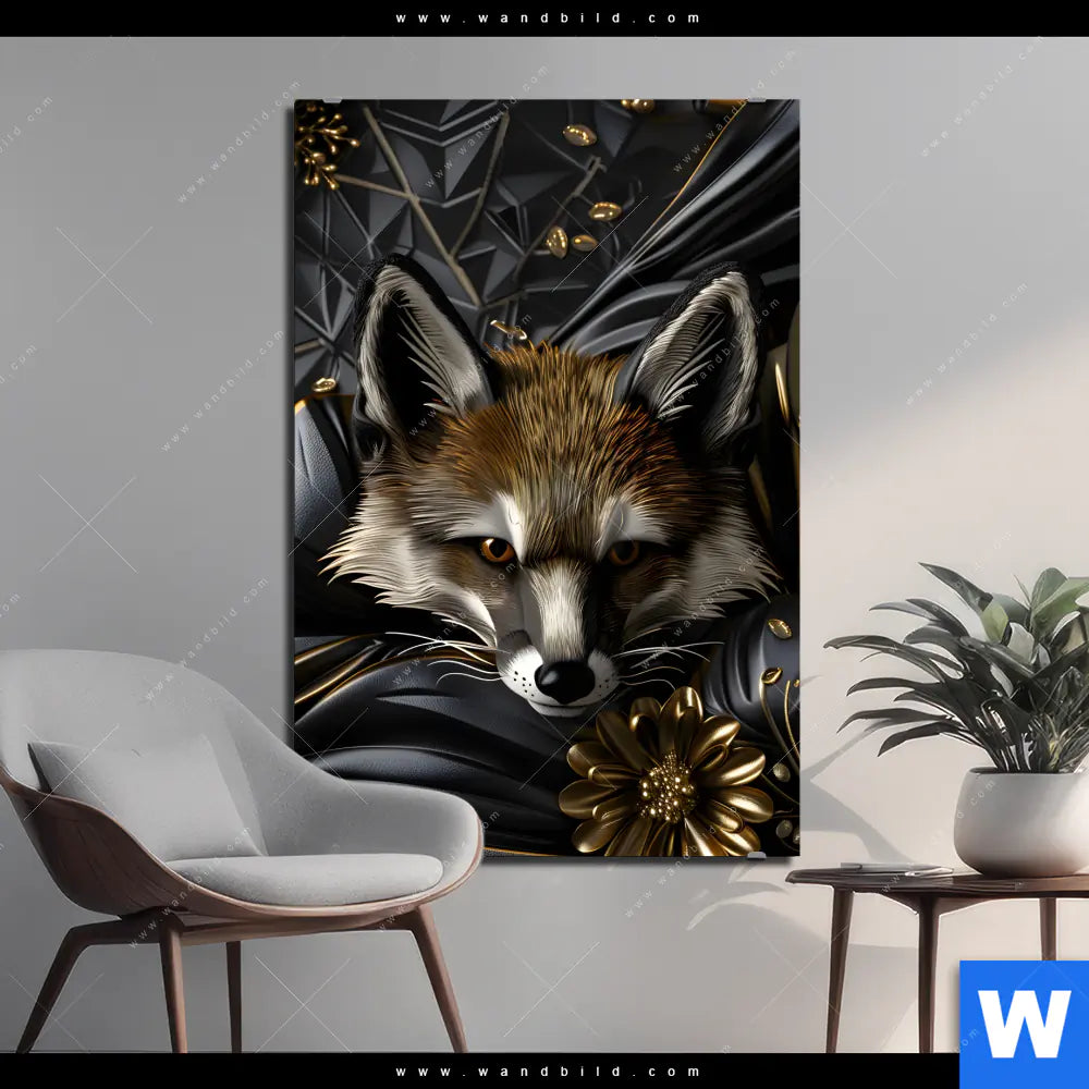 Alu-Dibond Bild | Luxuriöser Fuchs mit Blumen | Hochformat