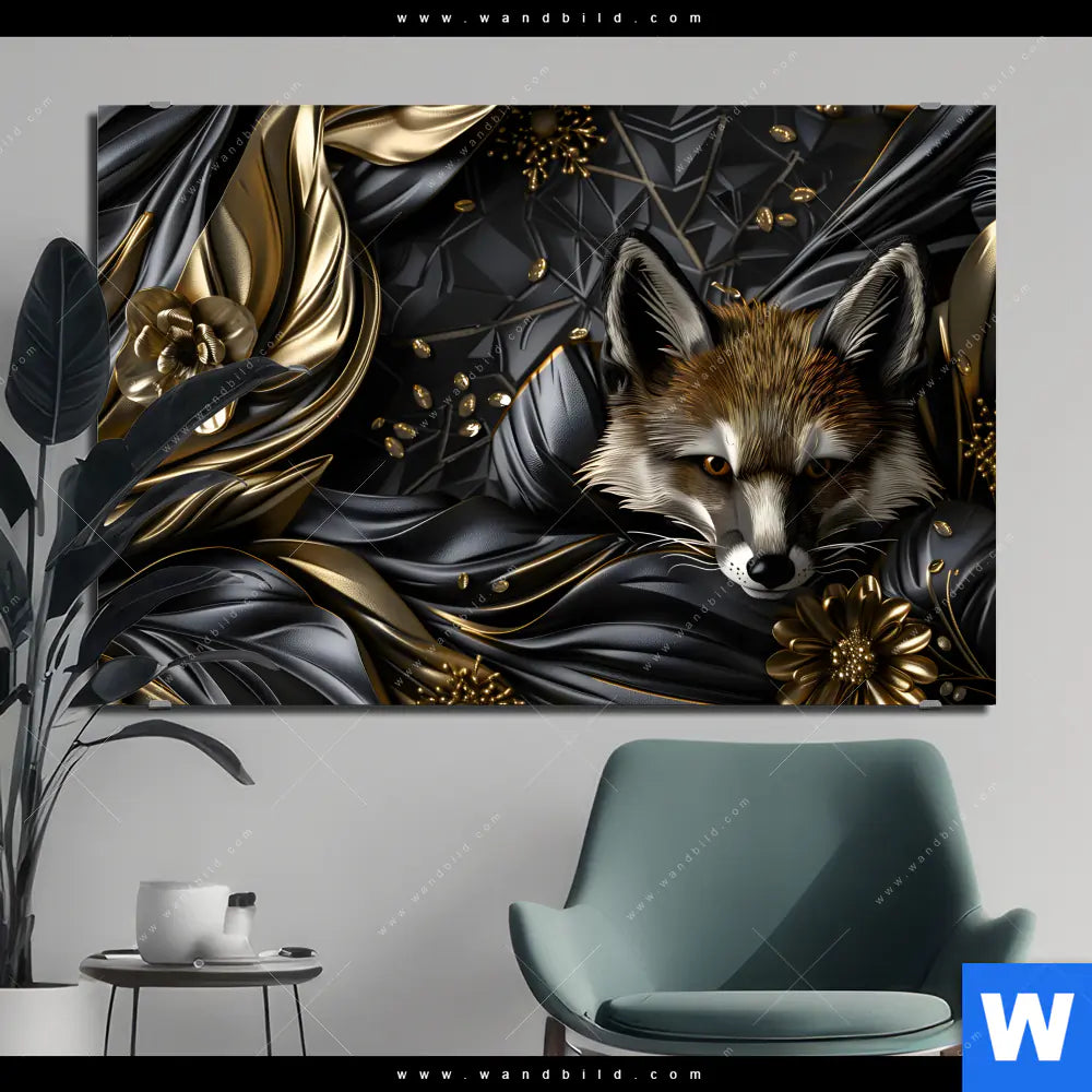 Alu-Dibond Bild | Luxuriöser Fuchs mit Blumen | Querformat