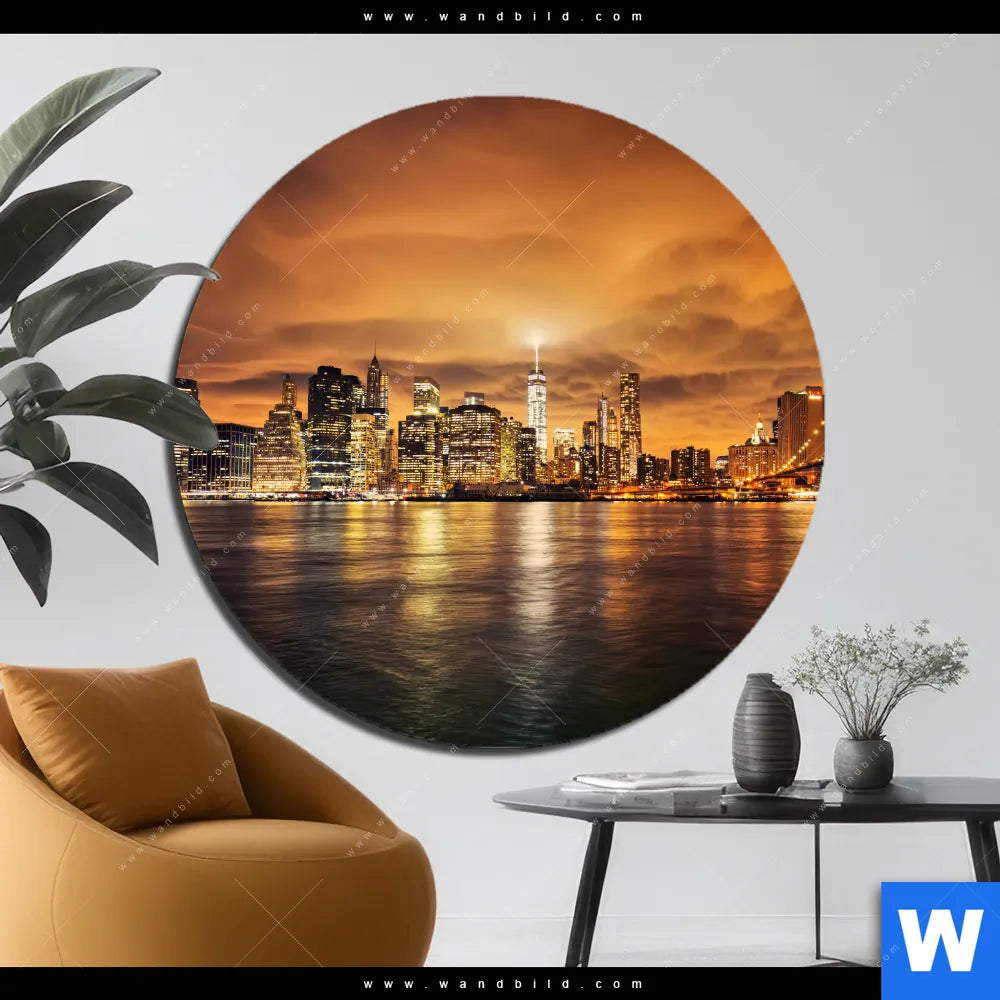 Alu-Dibond Bild | Manhatten bei Sonnenuntergang | Rund