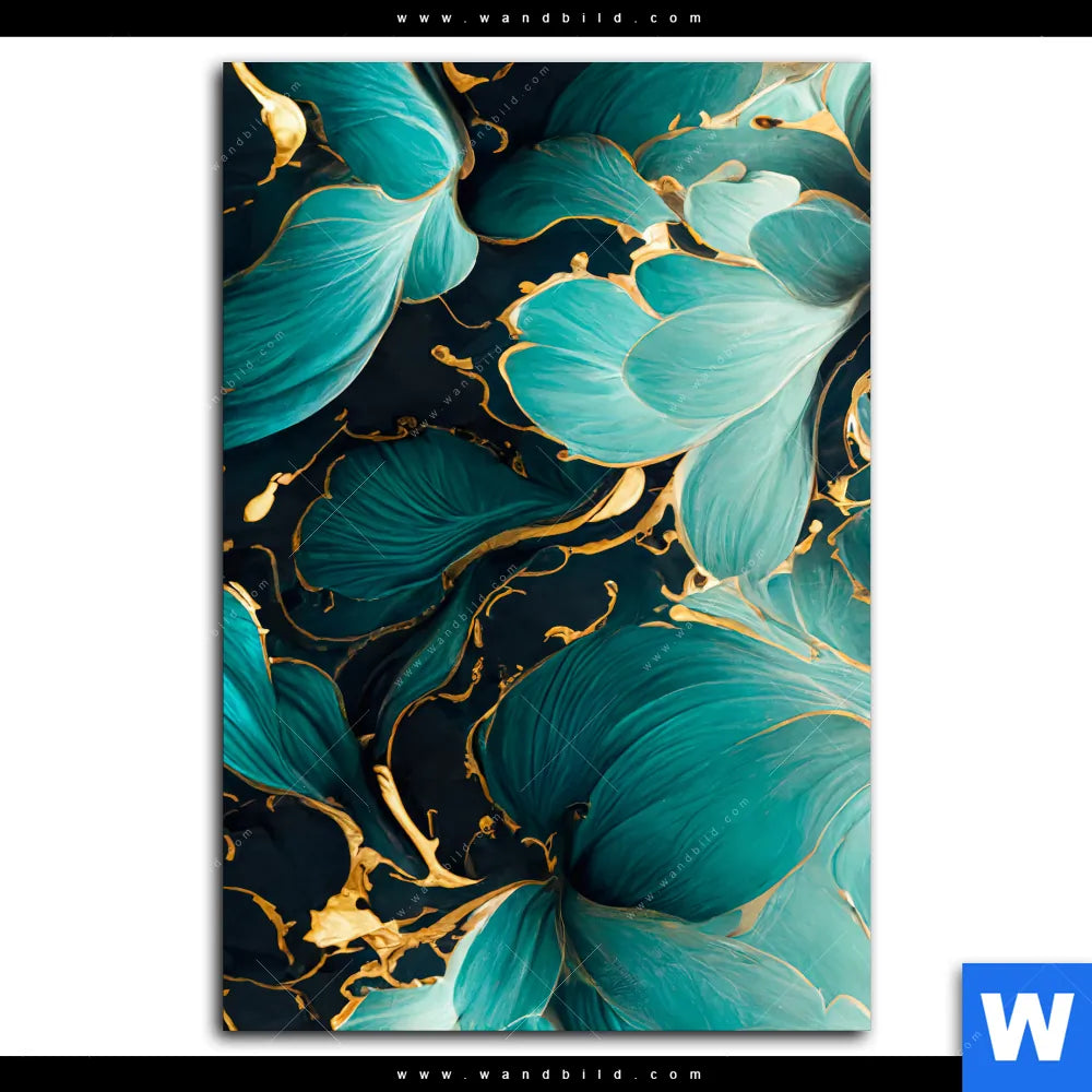 Alu-Dibond Bild | Marmor Blüten in türkis & gold | Hochformat