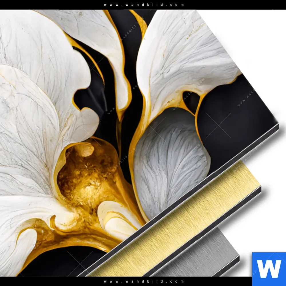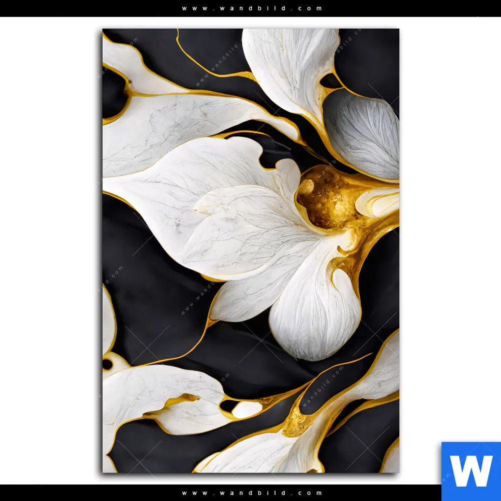 Alu-Dibond Bild | Marmor Blüten in weiß & gold | Hochformat