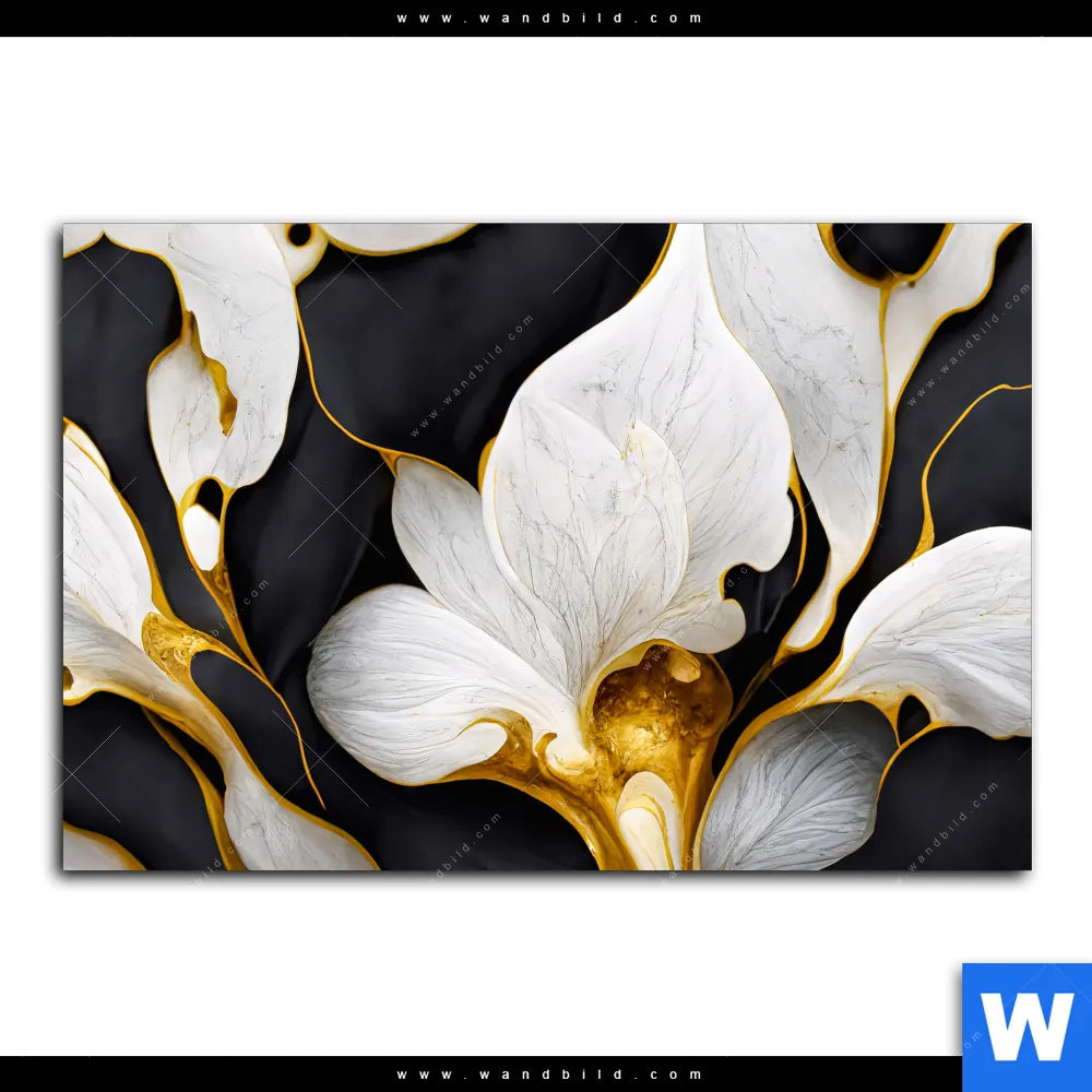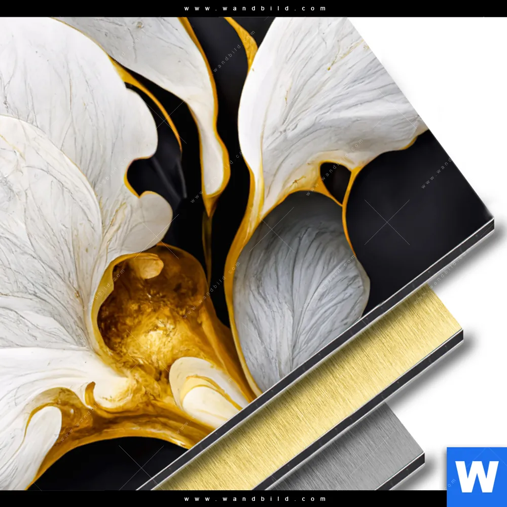 Alu-Dibond Bild | Marmor Blüten in weiß & gold | Querformat