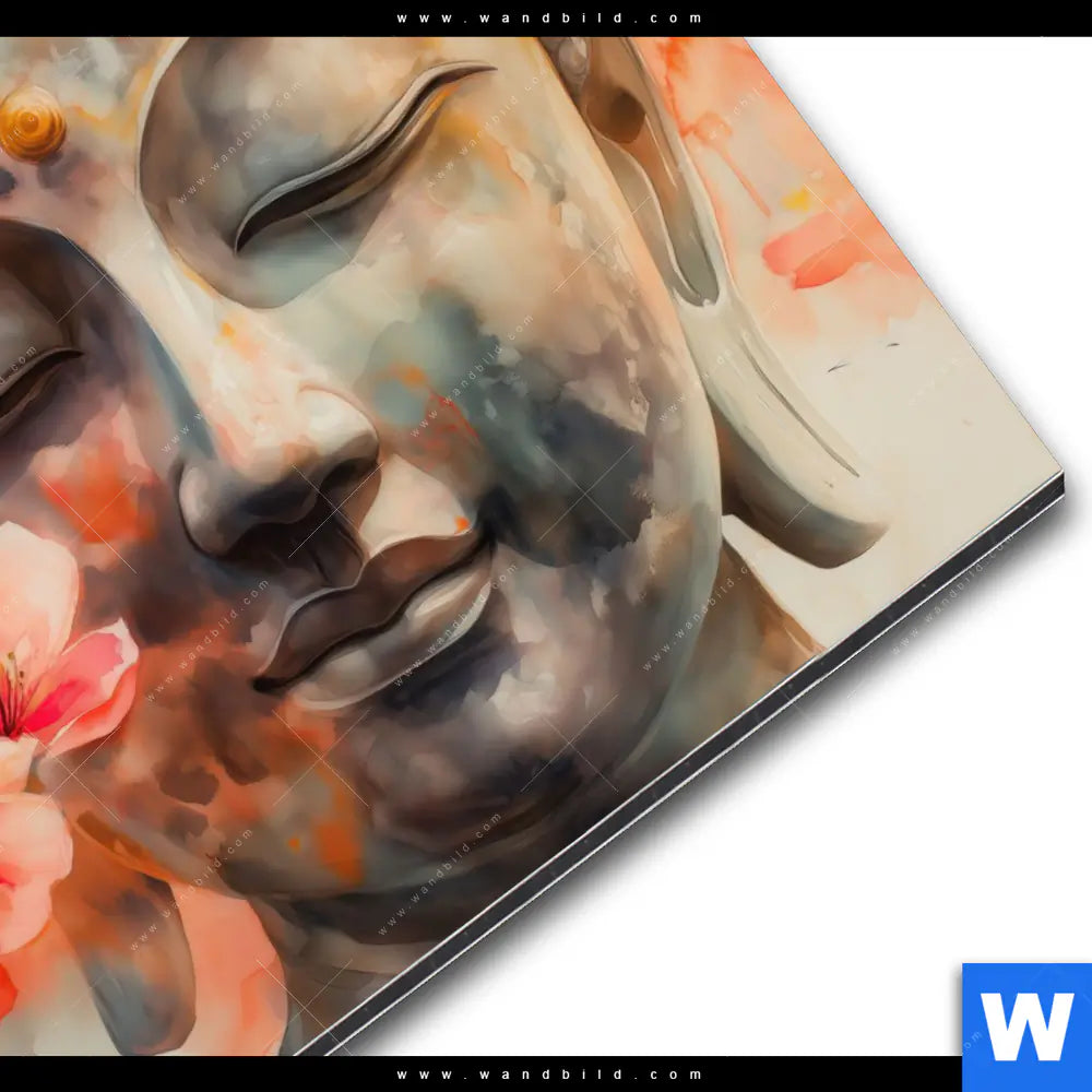 Alu-Dibond Bild | Meditativer Buddha in Blumen | Quadrat