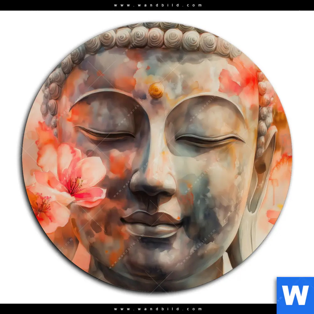 Alu-Dibond Bild | Meditativer Buddha in Blumen | Rund