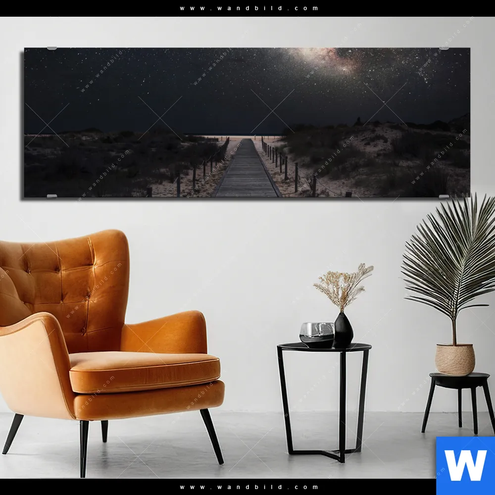 Alu-Dibond Bild | Milchstraße über einem Holzweg | Panorama