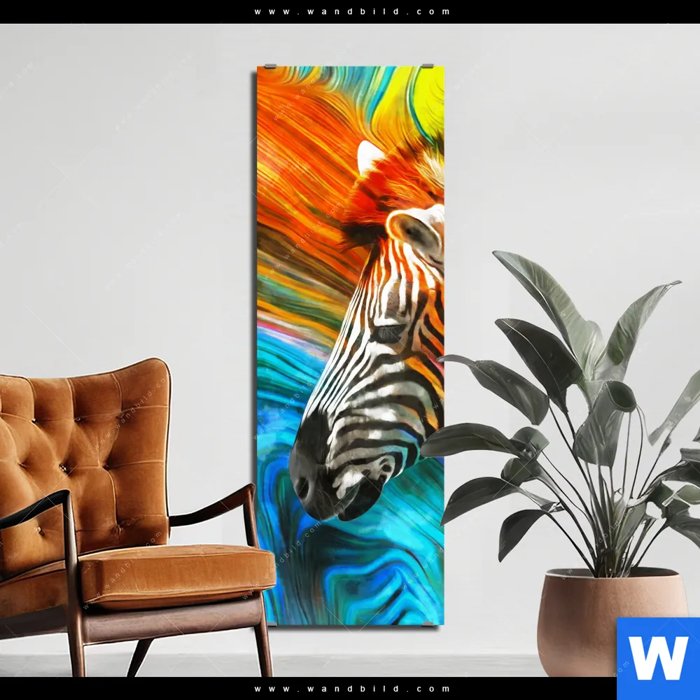 Alu-Dibond Bild | Modernes Buntes Zebra | Schmal
