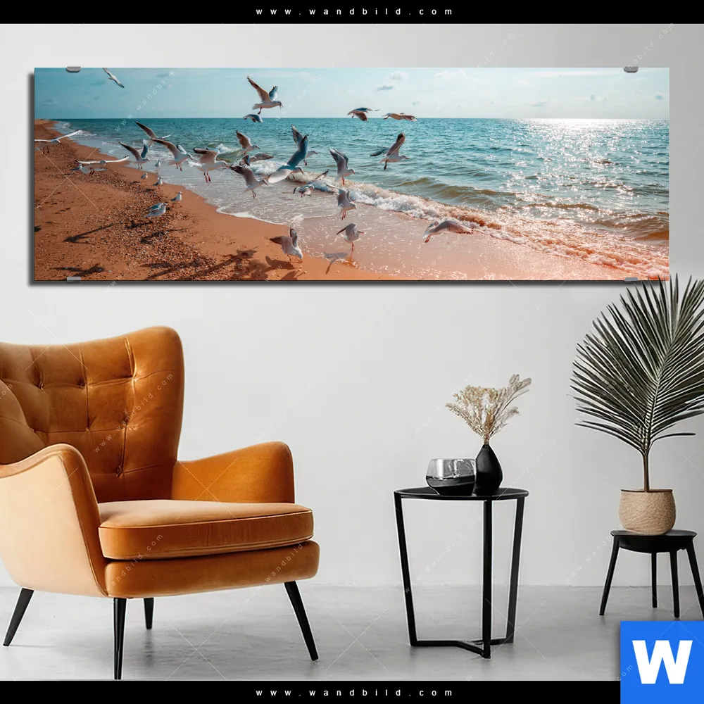 Alu-Dibond Bild | Möwen am Strand | Panorama