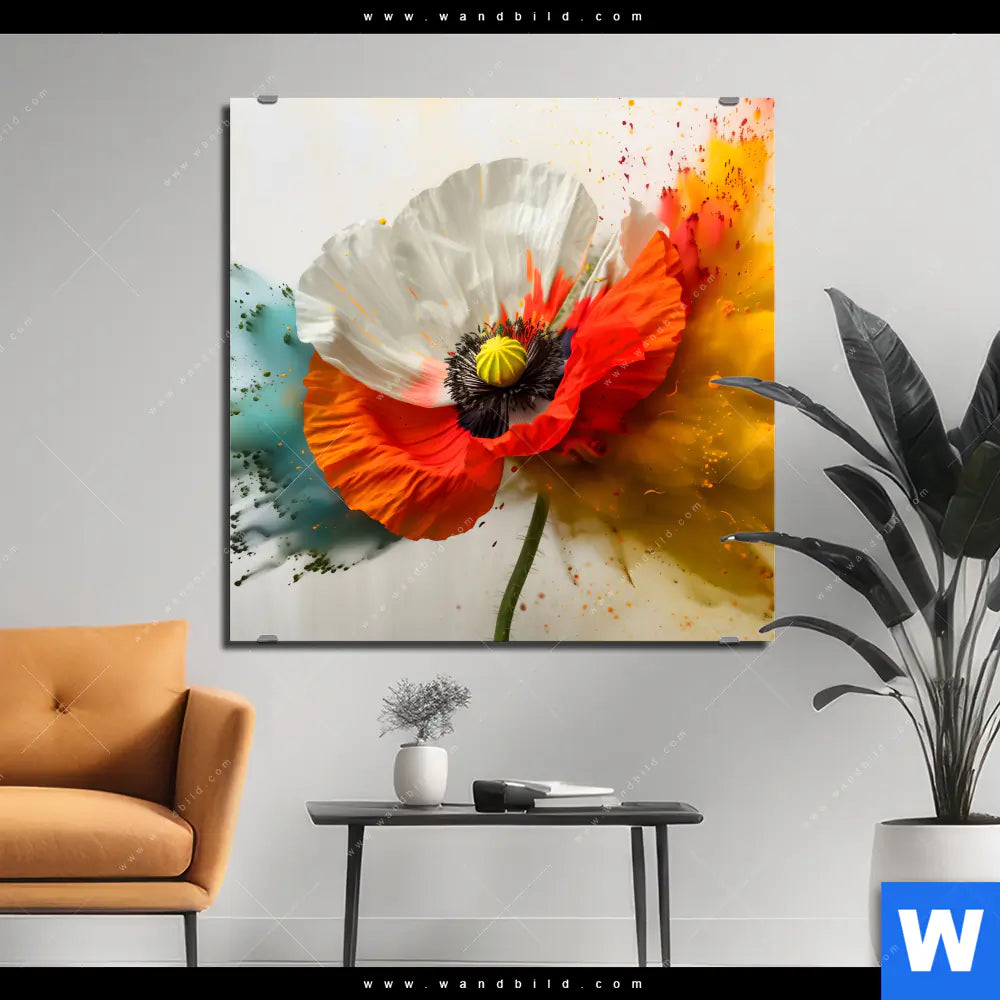 Alu-Dibond Bild | Mohnblume im Farbnebel | Quadrat